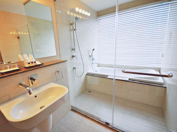 The Deluxe room with Twin beds is spacious at 36 sqm and includes an ensuite bathroom that has a bathtub and shower. The room interior has a modern minimalist look and was chosen for ease of hygienic cleaning and delivering comfort, so you get to rest, relax, and sleep soundly after a long day of activities.